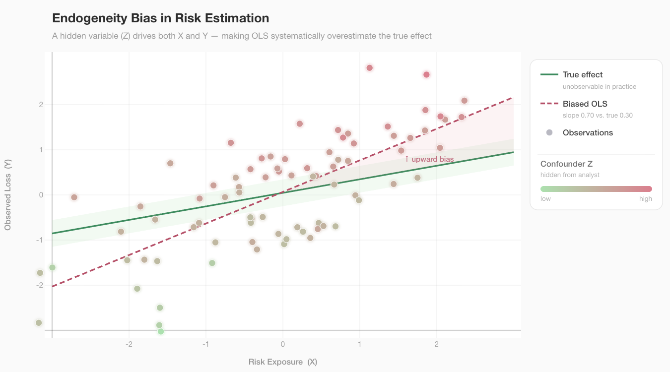 This dynamic has a parallel in mainstream finance, where endogeneity appears most visibly in market risk and asset pricing. For instance, large trades move prices, and correlated strategies, like portfolio insurance in the 1987 crash, can create the very downturns they were designed to protect against. The 2008 crisis is often also referred to as at least partially caused by underestimated endogeneity - largely caused by banks and rating agencies, who were responsible for evaluating the risk of those real estate assets, which then exacerbated the risk itself. However, albeit imperfect, financial analysts have developed tools to deal with this. Nature-related risks additionally present a harder version of the same problem: The feedback loops between economic activity and ecosystem degradation are slower, more complex, and less well-documented than those in financial systems, and the data infrastructure is also far less mature.